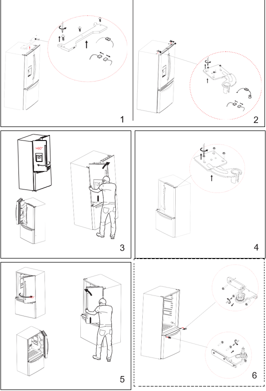 - Demontage, Montage und Umkehrung von Türen und Scharnieren (3) Umkehrung und Installation der breiten Tür