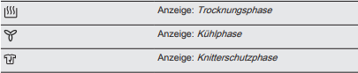 - Ist der Trockner in Betrieb, blinkt während des gesamten Programms immer ein Symbol- je nachdem in welcher Programmphase sich der Trockner gerade befindet.