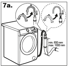 - Die Höhe des Ablaufschlauches sollte mindestens 60 cm und maximal 100 cm über der Aufstellfläche der Waschmaschine liegen.