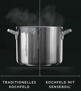 - Der intelligente SenseBoil-Sensor unter der Glasplatte des Induktionskochfelds erkennt aufsteigende Luftbläschen im kochenden Wasser.