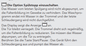 - Reduzieren Sie die Schleuderdrehzahl oder stellen Sie Spülstopp ein.