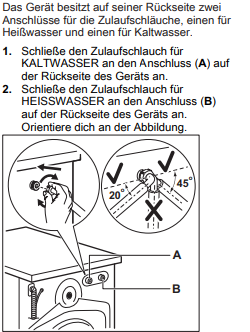 - Um die Waschmaschine mit warmen und kaltem Wasser aus dem häuslichen Wassersystem zu füllen, gehen Sie wie folgt vor: