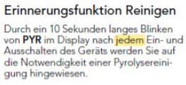 HINWEIS: Die Anzeige PYR ist NICHT abhängig vom tatsächlichen Verschmutzungsgrad der Backröhre!