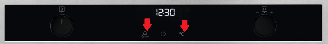 - Kindersicherung - der Backofen zeigt SAFE oder das Vorhängeschloss-Symbol an