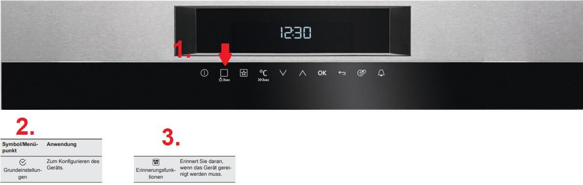 - Wählen Sie im Menü Ofenfunktion die Grundeinstellungen aus.