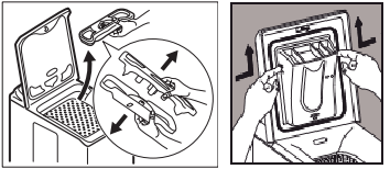HINWEIS: Bei einigen Topladern kann die Waschmittelkammer nicht entnommen werden! Hinweise finden Sie in der Bedienungsanleitung!