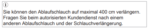 Bild 1: Beispiel für Hinweis zur Schlauchverlängerung aus der Bedienungsanleitung