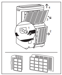 - Die Filter sollten innerhalb der Betriebszeit durchschnittlich alle zwei Wochen gereinigt werden, oder wenn die Kühlleistung nachlässt.