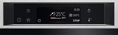 - Die zuletzt verwendeten Backofenfunktionen und die ausgewählte Einstelltemperatur.