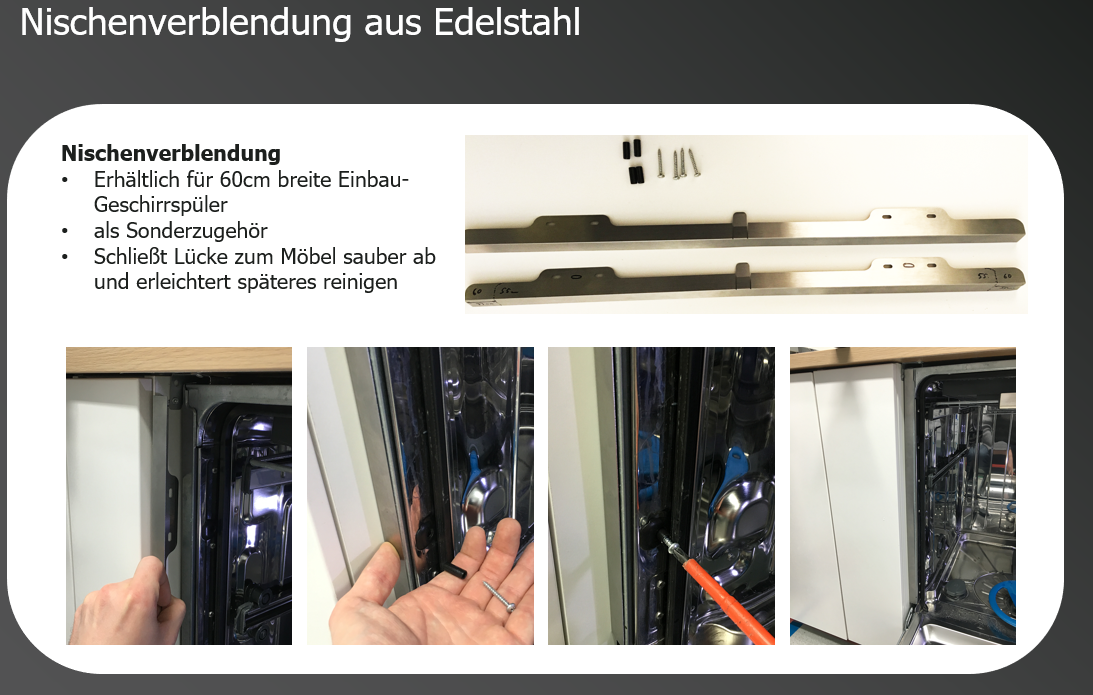 - Wie wird die Nischenverblendung für Geschirrspüler TB60 montiert?
