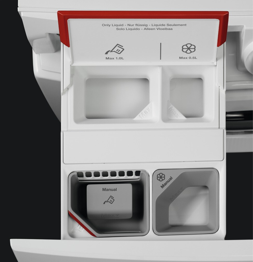 - Eine automatische Dosierung des Wasserenthärters über das AutoDose Fach ist nicht möglich!