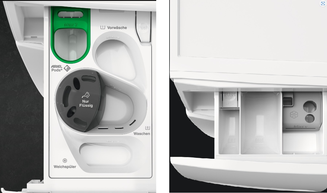 - Bei der Verwendung von Flüssigwaschmittel in einem herkömmlichen Waschmittelfach
